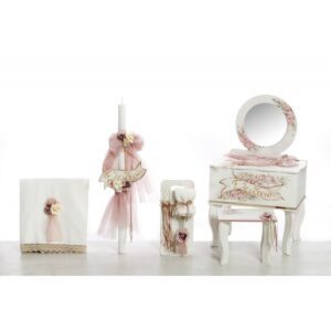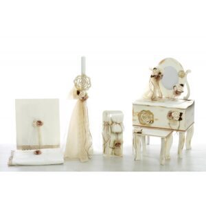 Διάσταση Κουτιού (Υ.85 Μ.50 Π.35)Το σετ περιλαμβάνει:✔ Ξύλινο μπουντουάρ-κουτί βάπτισης με καθρέφτη, δουλεμένο στο χέρι.