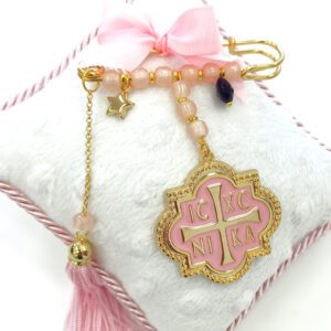 Ένα μοναδικό δωρό για νεογένητο! Ένα δώρο που θα μείνει για πάντα! Για τις μικρές πολύτιμες στιγμές σας! Μεταλλικό Κωνσταντινάτο πάνω σε παραμάνα με ροζ εντυπωσιακη φούντα και δεμμενο πανω σε λευκό μαξιλαράκι