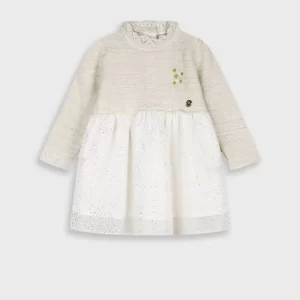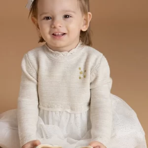 Βρεφικό Φόρεμα Με Φούτερ Στο Πάνω Μέρος Και Βελουτέ Πλισέ Στο Κάτω Μέρος, Όμορφο Ανεξίτηλο Τύπωμα Αγκαλιά με Αρκουδάκι, Ριπ Μανσέτα Στα Άκρα, Μοντέρνος Σχεδιασμός, Κατασκευασμένο Από Εξαιρετική Ποιότητα