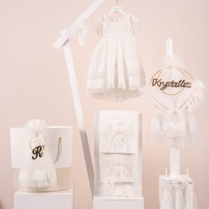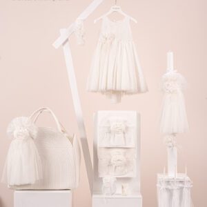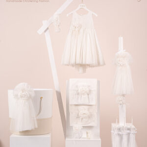 - Λαδόπανα βάπτισης σεταρισμένα με το φόρεμα LK-CATALINA IVORY .