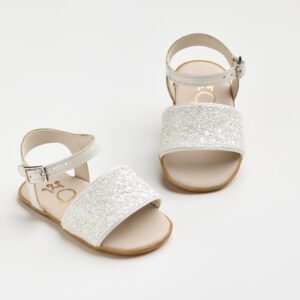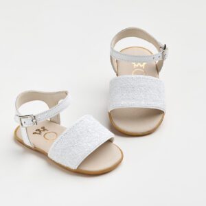 K620A (Νο 18-21) Σανδάλι για τα πρώτα βήματα σε λευκό ματ γκλίτερ και λευκό δέρμα