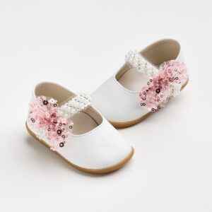 K626A (Νο 18-21) Μπαλαρίνα για τα πρώτα βήματα σε λευκό τεχνόδερμα με πέρλες και φούξ