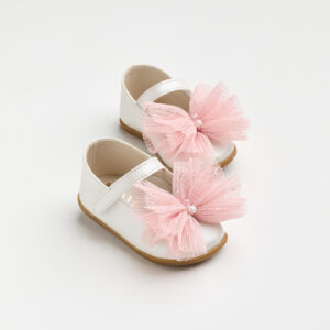 K629A (Νο 18-21) Μπαλαρίνα για τα πρώτα βήματα σε λευκό τεχνόδερμα με χειροποίητο φιόγκο από