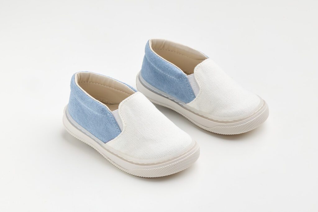 Α620P εσπαντρίγια περπατήματος, σε λευκό ύφασμα και γαλάζιο καστόρ δέρμα