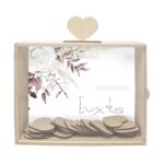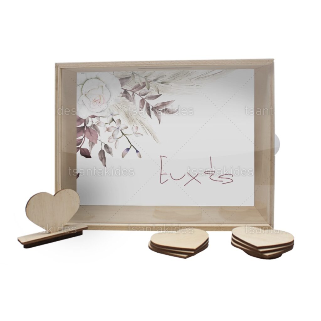 Ξύλινο κουτί ευχών γάμου εκτυπωμένο με θέμα Dusty pink boho pampas