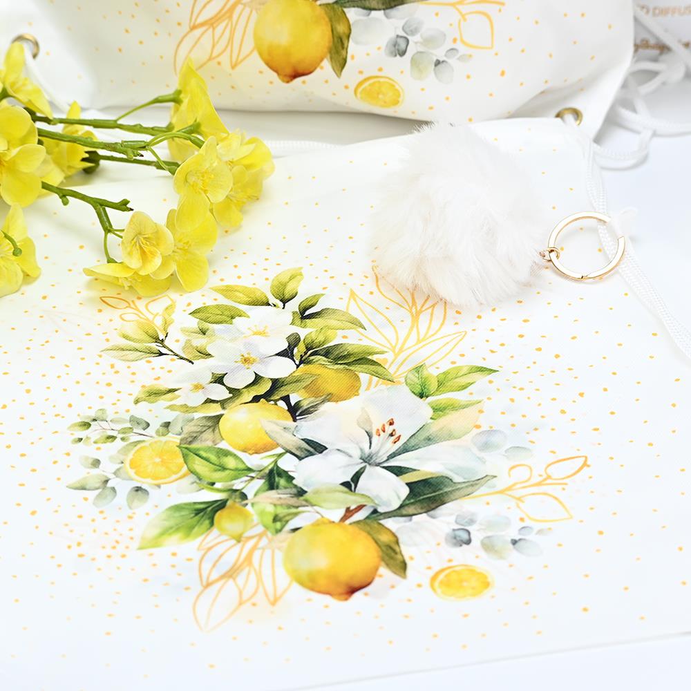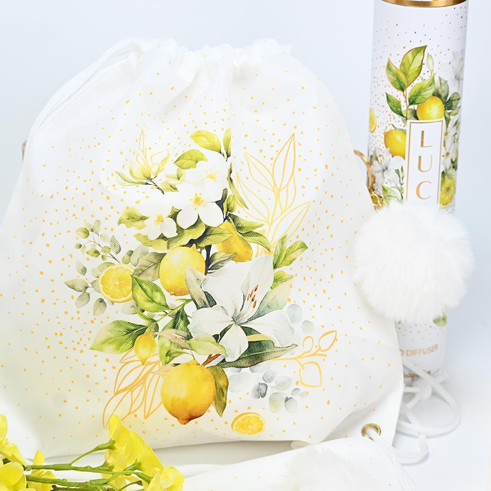 Μπομπονιέρα – Σακίδιο πλάτης λεμόνια με λουλούδια μαζί με μπρελόκ Soap Tales ST00896