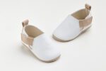 Α600Ε παπουτσάκι αγκαλιάς σε λευκό δέρμα και μπεζ καστόρ, κλείσιμο με velcro