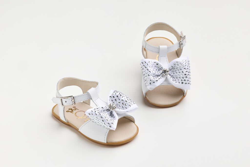 K625A (Νο 18-21) Σανδάλι για τα πρώτα βήματα σε λευκό δέρμα και χειροποίητο φιόγκο με στρας