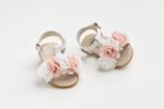 K622A (Νο 18-21) Σανδάλι για τα πρώτα βήματα σε λευκό δέρμα και λουλούδια σε off white και