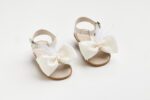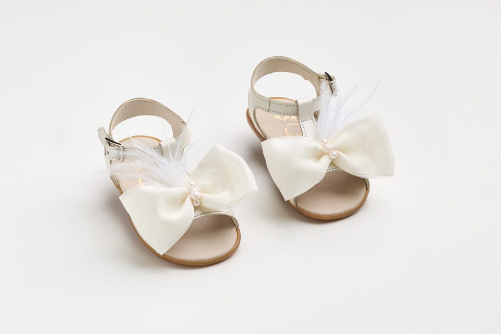 K621E (Νο 18-21) Σανδάλι για τα πρώτα βήματα από εκρού δέρμα και χειροποίητο φιόγκο με φτερά
