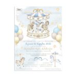 Προσκλητήριο βάπτισης για αγόρι εκτυπωμένο με θέμα Carousel
