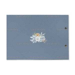 ο προσκλητήριο διαθέτει φάκελο διάστασης 19,5X14,5 cm σε μπλε ματ χαρτί.