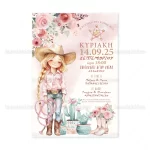 Προσκλητήριο βάπτισης για κορίτσι εκτυπωμένο με θέμα Cowgirl