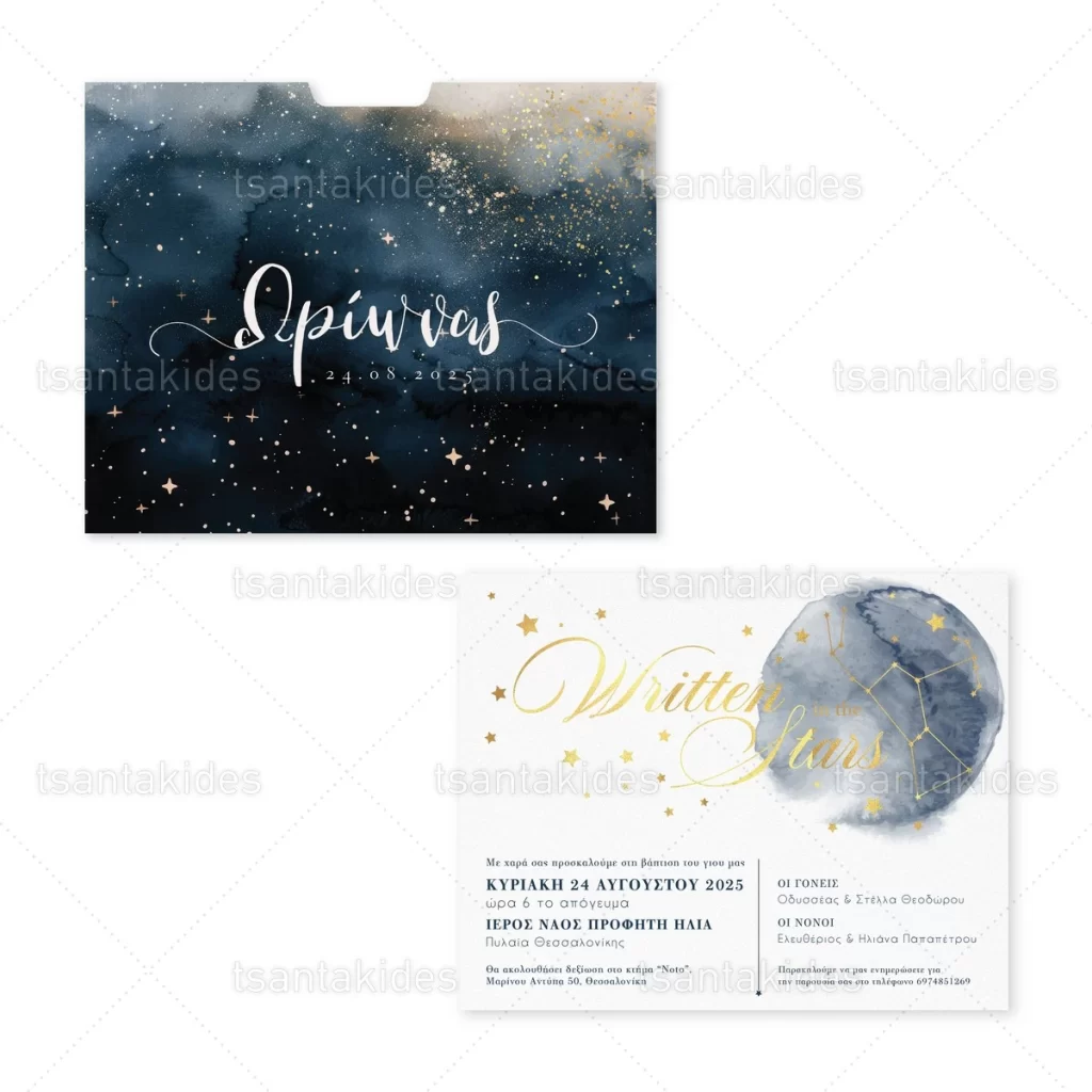 Προσκλητήριο βάπτισης για αγόρι εκτυπωμένο με θέμα Dark Blue Sky