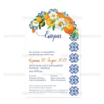 Προσκλητήριο βάπτισης για αγόρι εκτυπωμένο με θέμα Majolica Tile & Oranges