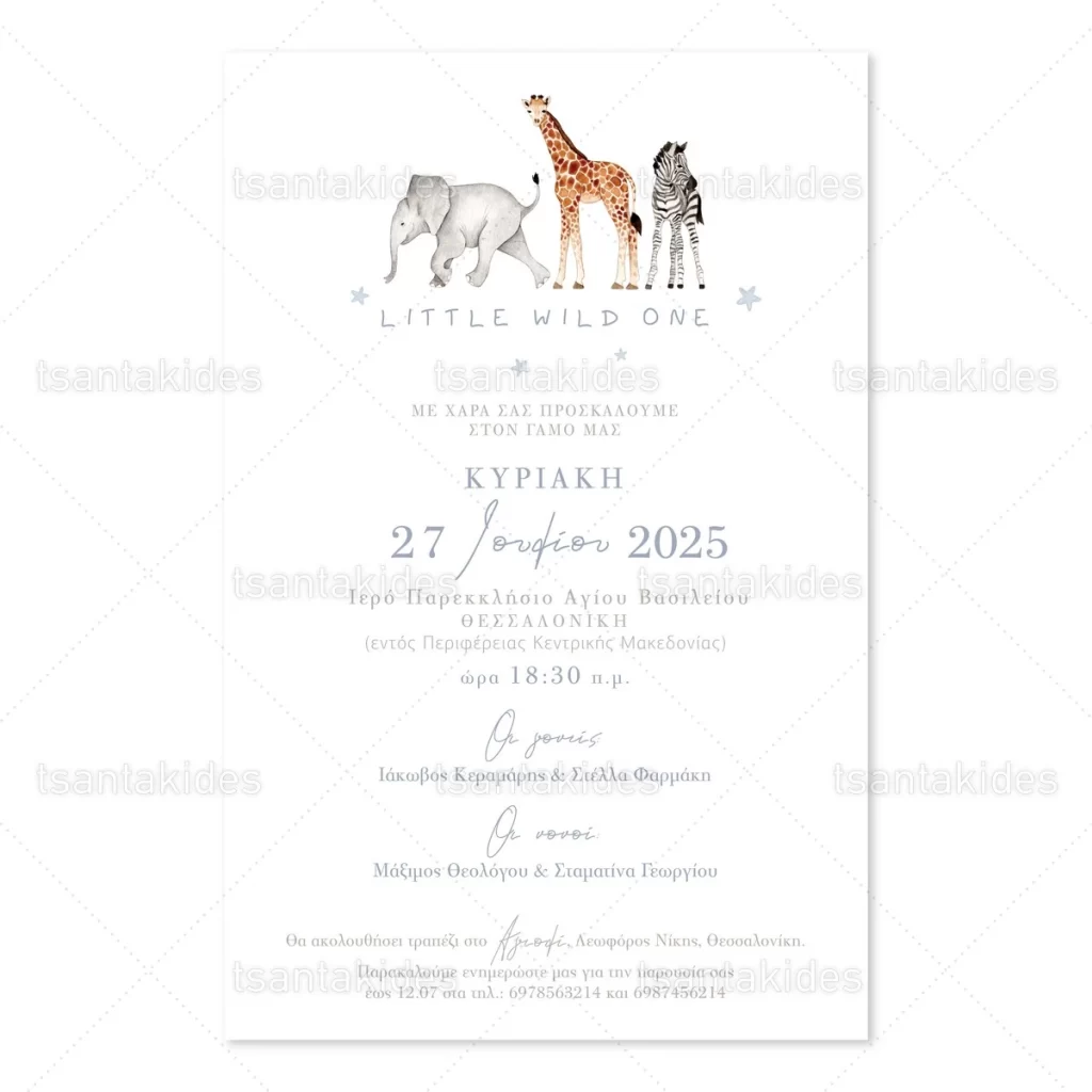 Προσκλητήριο βάπτισης για αγόρι εκτυπωμένο με θέμα Jungle Nurcery