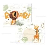 Προσκλητήριο βάπτισης για αγόρι εκτυπωμένο με θέμα Cute Lion