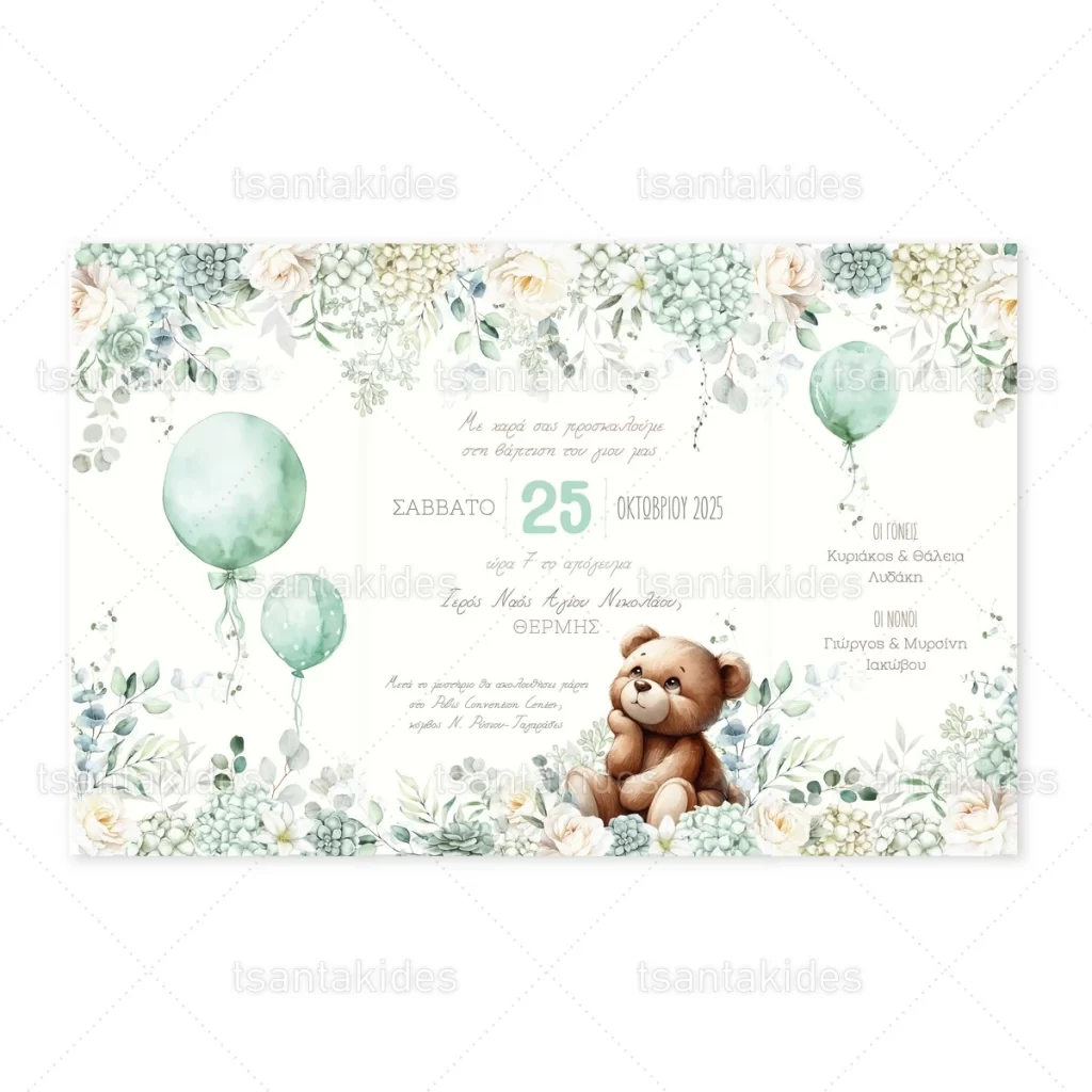 ΠΡΟΣΚΛΗΤΗΡΙΟ ΒΑΠΤΙΣΗΣ 1946 3Π15 με θέμα το αρκουδάκι