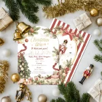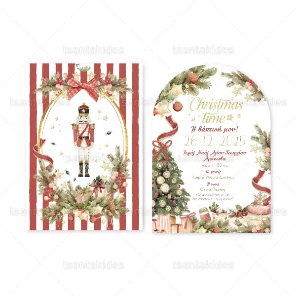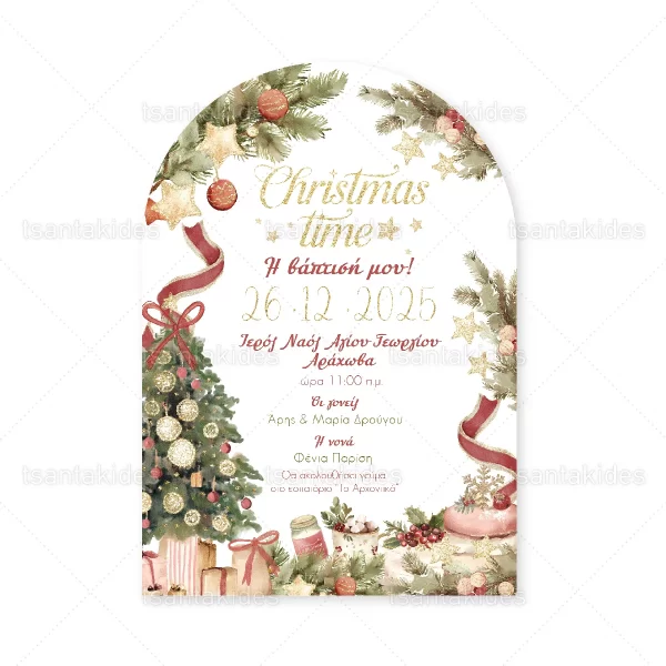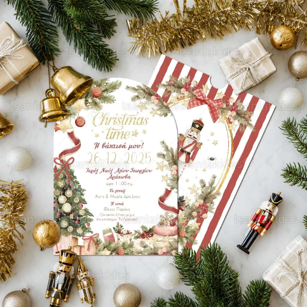Προσκλητήριο βάπτισης για αγόρι εκτυπωμένο με θέμα Classic Christmas