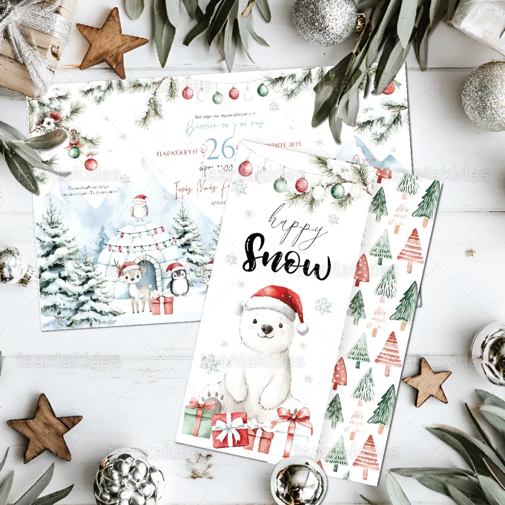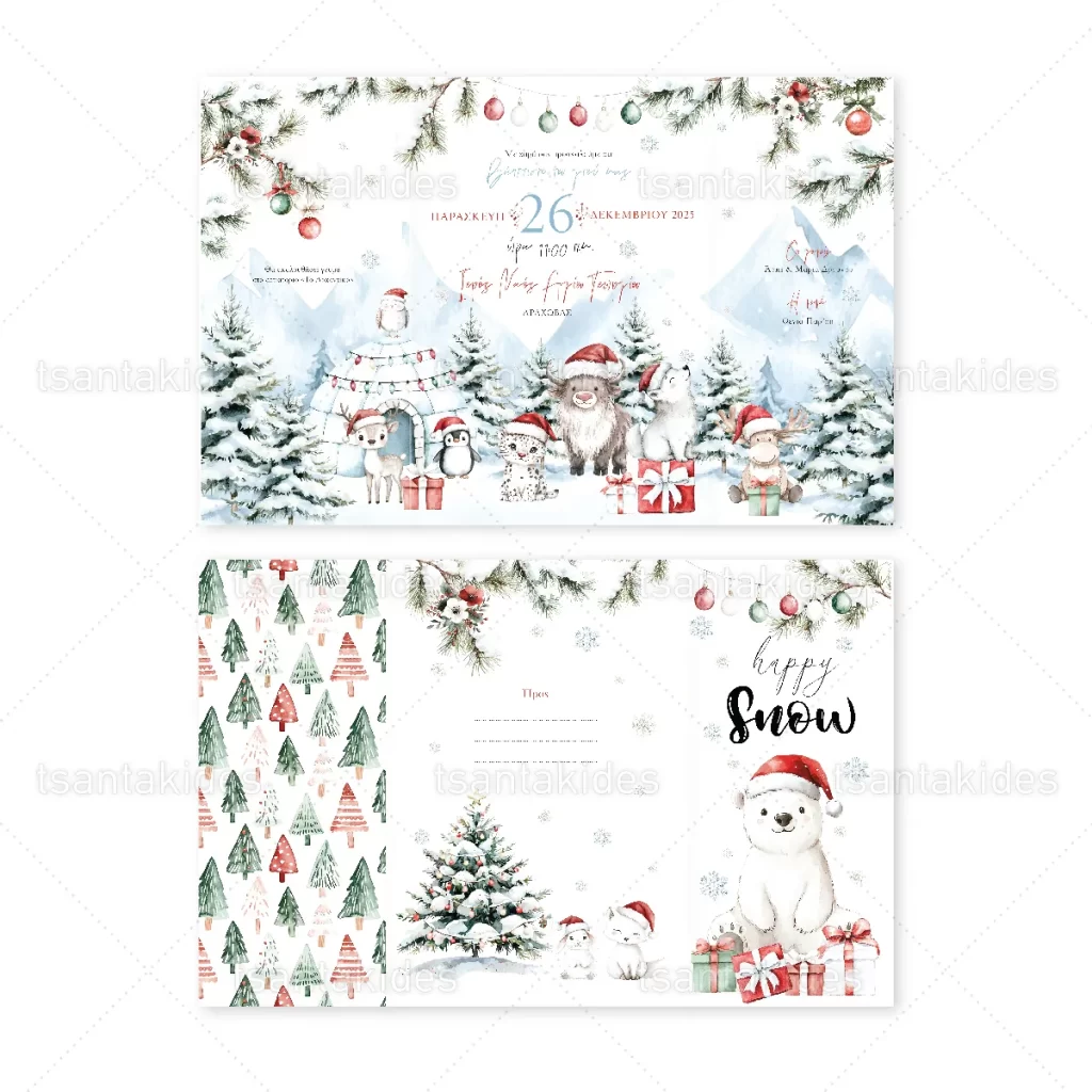 Προσκλητήριο βάπτισης εκτυπωμένο με θέμα Polar Friends