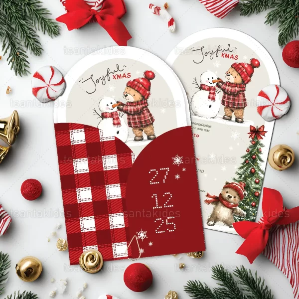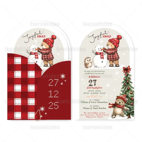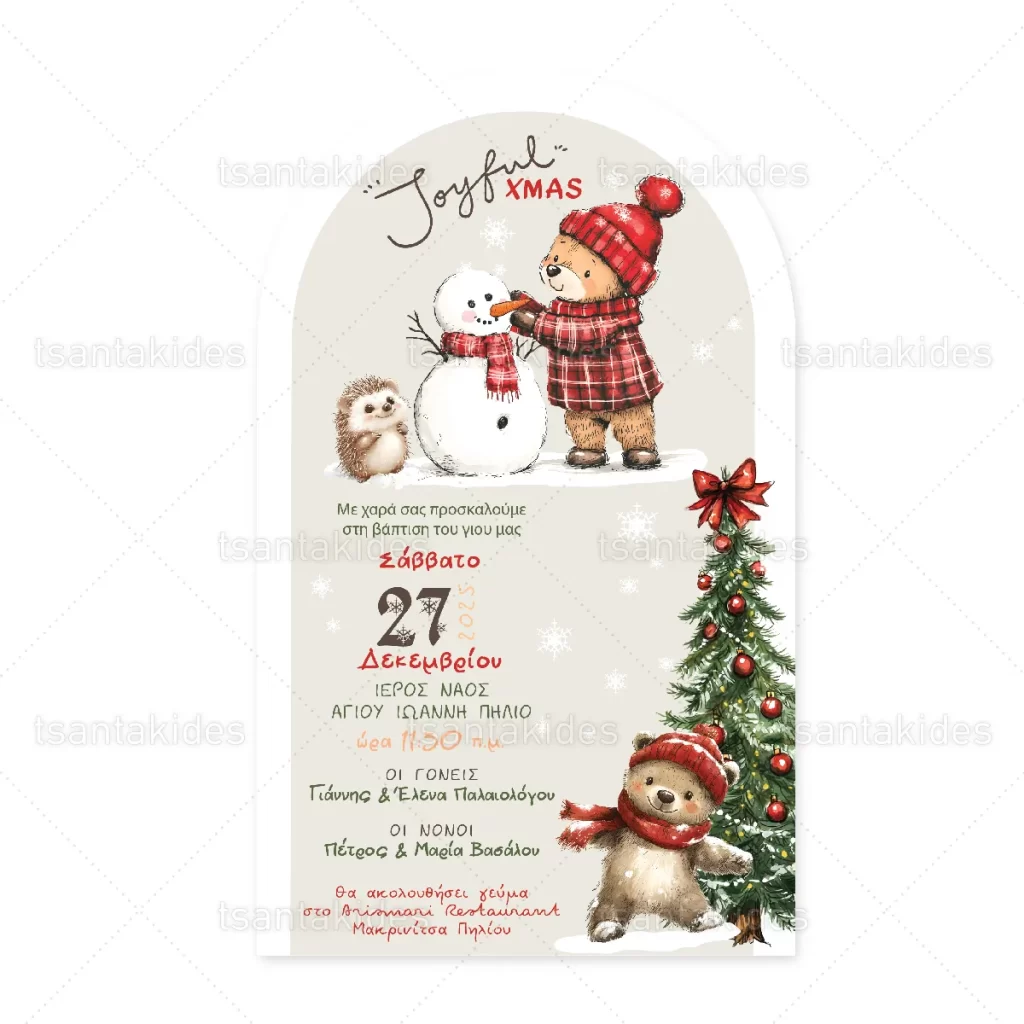 Προσκλητήριο βάπτισης εκτυπωμένο με θέμα Christmas Bear