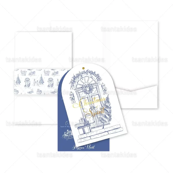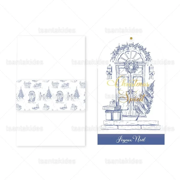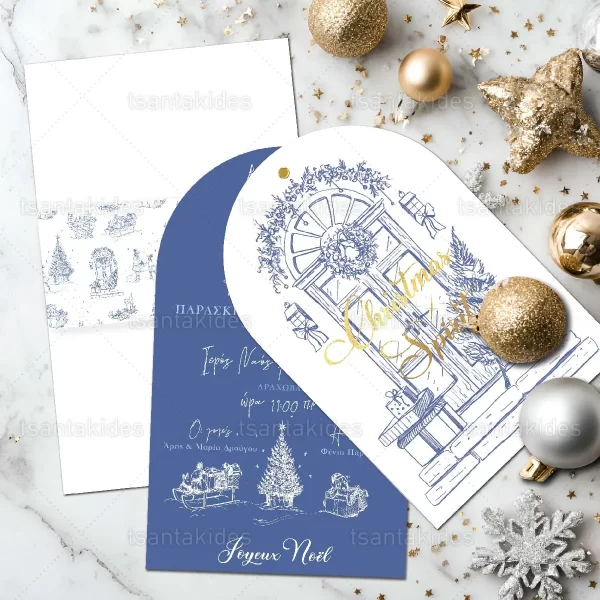 Προσκλητήριο βάπτισης εκτυπωμένο με θέμα Xmas Blue Toile