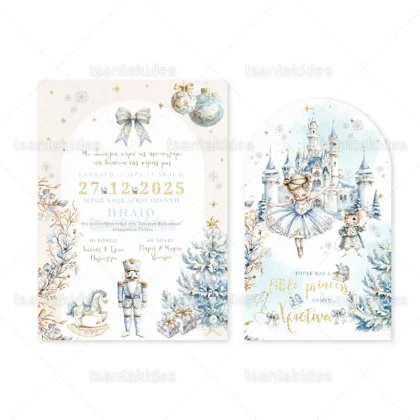 Προσκλητήριο βάπτισης για κορίτσι εκτυπωμένο με θέμα Christmas Ballerina