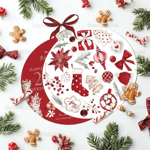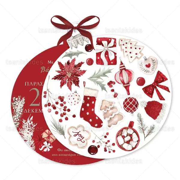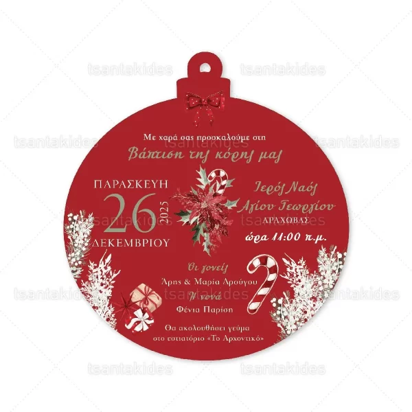 Προσκλητήριο βάπτισης εκτυπωμένο με θέμα Christmas Ball