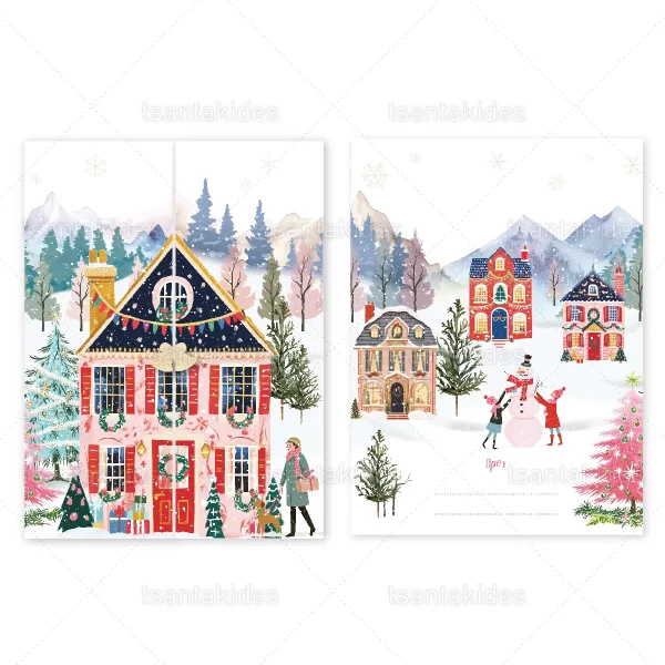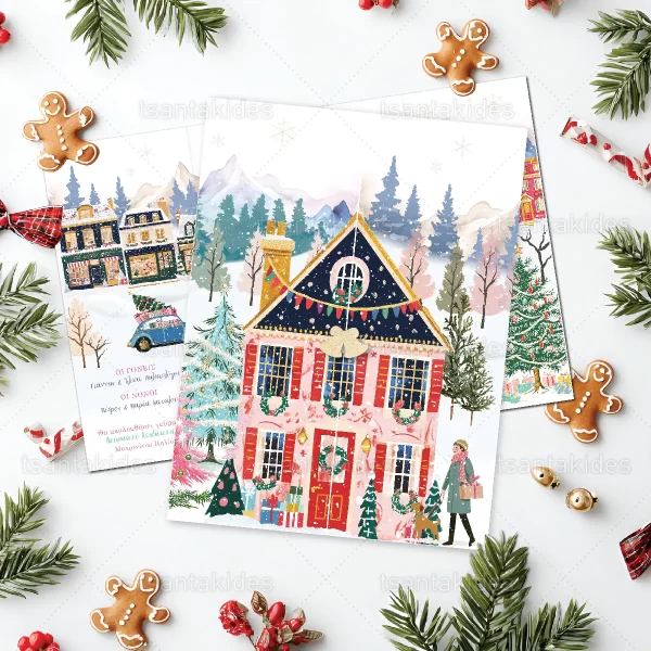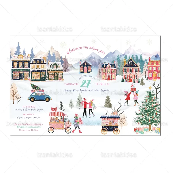 Προσκλητήριο βάπτισης εκτυπωμένο με θέμα Christmas Town
