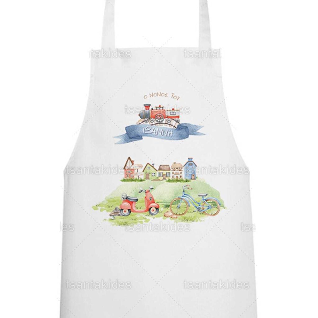 Υφασμάτινη ποδιά νονού/νονάς εκτυπωμένη με θέμα Travel & Transport