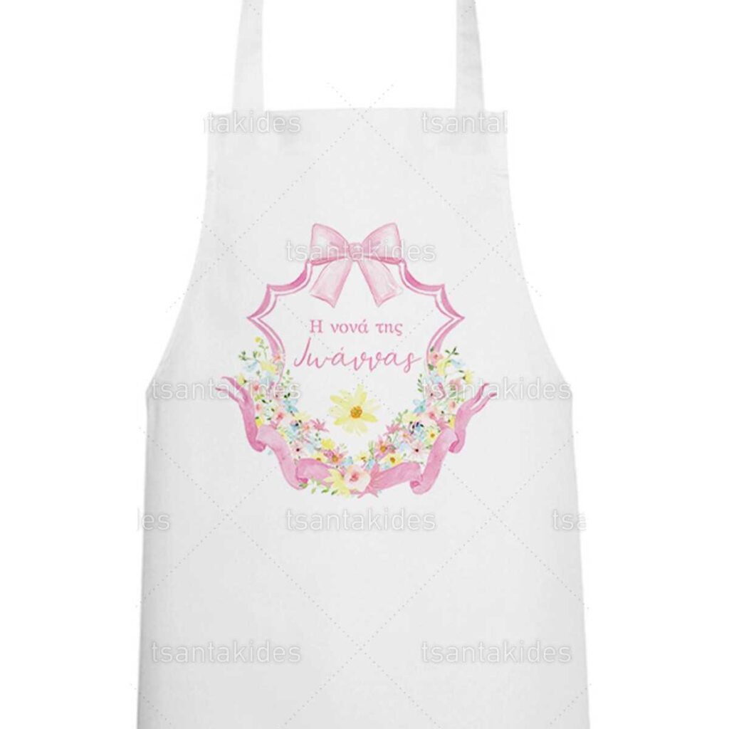 Υφασμάτινη ποδιά νονού/νονάς εκτυπωμένη με θέμα Floral monogram