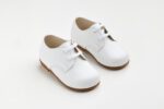 Βαπτιστικά παπουτσάκια αγοριού δερμάτινα από την νέα σειρά της Babywalker με κορδόνια σε άνετη γραμμή κατασκευασμένα από δέρμα σε λευκό χρώμα με μπεζ εσωτερικό.