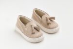 A621E Slip on παπούτσι περπατήματος σε μπεζ καστόρ δέρμα και διακόσμηση με