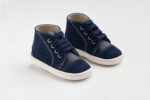 Δερμάτινα snakers βάπτισης αγοριού με εύκολο και διπλό κλείστρο velcro από την Babywalker σε άνετη γραμμή και μπλε απόχρωση .