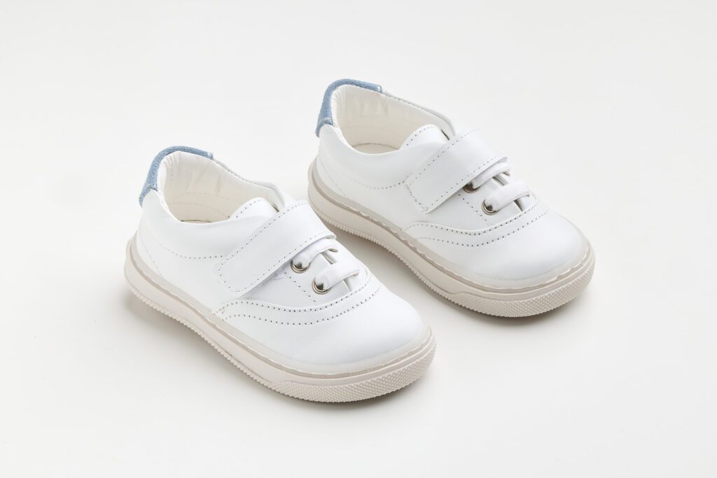 A629A παπουτσάκι περπατήματος σε λευκό λείο δέρμα, γαλάζιο καστόρ δέρμα και