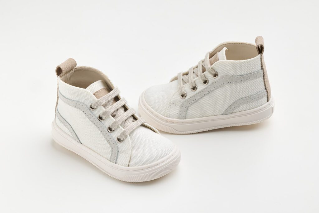 A633A μποτάκι περπατήματος σε λευκό ύφασμα και λεπτομέρεια από μπεζ και λευκό