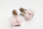 K6125A (19 – 27) Μπαλαρίνα περπατήματος σε λευκό δέρμα με χειροποίητο διακοσμητικό από ροζ