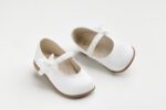 K6111A (19 – 27) Μπαλαρίνα περπατήματος σε λευκό δέρμα με πέρλες και λουλούδι στην