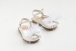 K671E (19 – 27) Μπαλαρίνα περπατήματος mule εκρού δέρμα με χειροποίητο φιόγκο από μουσελίνα