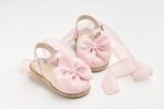 K656P (19 – 27) Εσπαντρίγια περπατήματος σε ροζ δέρμα και σατέν με χειροποίητο φιόγκο από ροζ