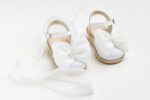 K656A (19 – 27) Εσπαντρίγια περπατήματος σε λευκό δέρμα και ύφασμα με χειροποίητο φιόγκο