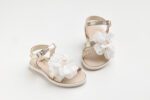 K643X (19 – 27) Σανδάλι περπατήματος σε χρυσό δέρμα και χρυσό γκλιτερ με λουλούδι κεντημένο με