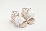 K643A (19 – 27) Σανδάλι περπατήματος σε εκρού δέρμα και off white γκλιτερ με λουλούδι κεντημένο