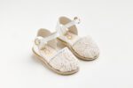 K654A (19 – 27) Εσπαντρίγια περπατήματος σε εκρού δέρμα και διαφάνεια με δαντέλα