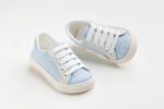 A627P παπουτσάκι περπατήματος σε γαλάζιο ύφασμα και λευκό καστόρ δέρμα