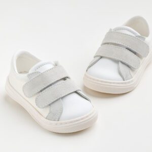 Βαπτιστικά sneakers δερμάτινα με εύκολο και διπλό κλείστρο velcro από την Babywalker σε άνετη γραμμή και λευκή απόχρωση .