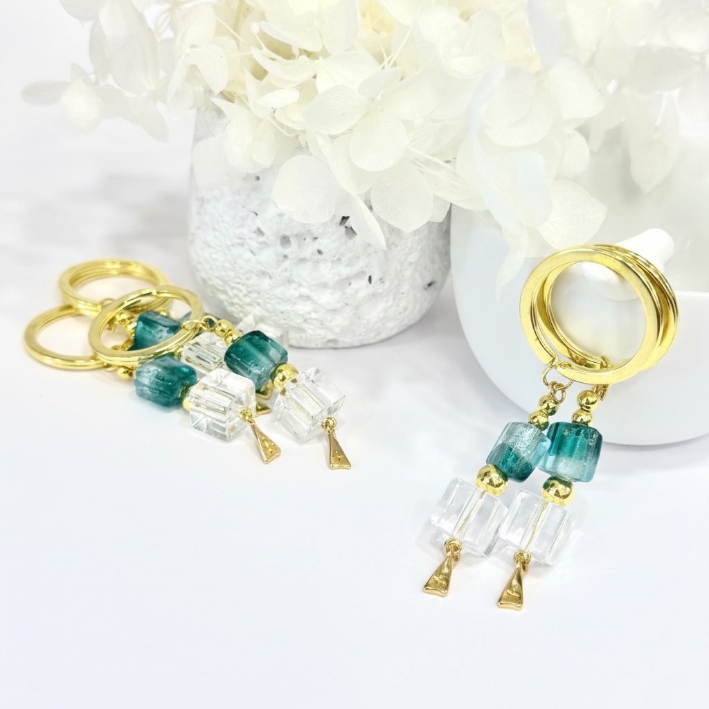 Μπρελόκ με γυαλωμένη χάντρα και σταυρό 24Κ.