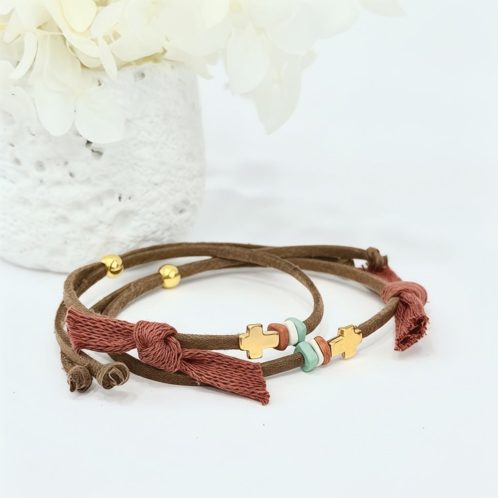 Βραχιόλι σουέτ με σταυρό 24Κ.