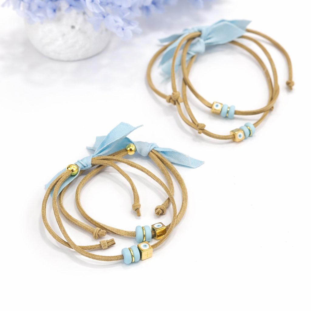 Μαρτυρικό βραχιόλι σουέτ με επίχρυσο σταυρό. Η τιμή αφορα 50τμχ Για ποσότητα μεγαλύτερη την 50 τεμαχίων, προστίθενται ανά 25τμχ  Διαθέσιμο από 20 έως 25 ημέρες, κάντε την παραγγελία σας εγκαίρως γιατί σε περιόδους με μεγάλο φόρτο οι μέρες μπορεί να είναι περισσότερες! Υπάρχει η δυνατότητα να συνοδέψετε τα μαρτυρικά σας με τη μοναδική κασετίνα του καταστήματος μας, διαστάσεων 15.5εκ*11.5εκ και η οποία μπορεί να γίνει και προσωποποιημένη με το όνομα το μωρού στο καπάκι της κομμένο με plexi glass, μια ιδιαίτερη πρόταση μόνο απο το Fairytale’s Story!