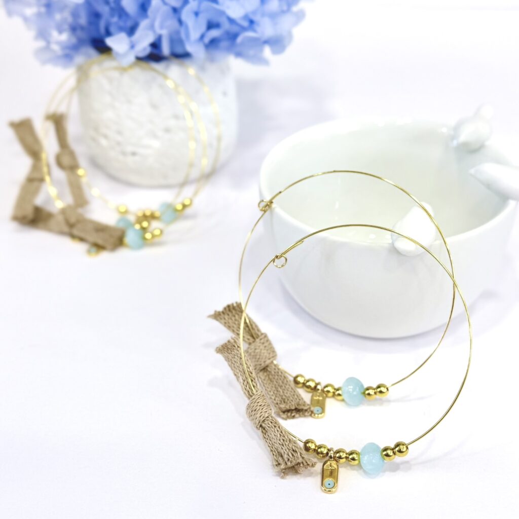 Μαρτυρικό βάπτισης μπεγλέρι με χρυσό επισμαλτωμένο ματάκι, μεταλλικό αστέρι και σιέλ χάντρες. Η τιμή αναφέρεται στη συσκευασία των 25 τεμαχίων